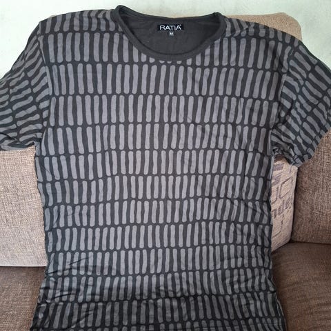 Ratia pusero koko S ja mitat kainalo-klo 62cm ja olka-helma 68cm pituus.Materiaali 100% puuvilla.ja katso kuvat tarkasti.pinnassa pientä nukkaa.kuvio kirjava.Tuote muuten puhdas ja ehjä.Savuton ja eläimetön