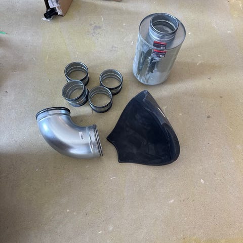 Käytetty 630mm. IV-kanava pit.1,3 m. , 45 ja 90 käyrät sekä lähtökaulus.