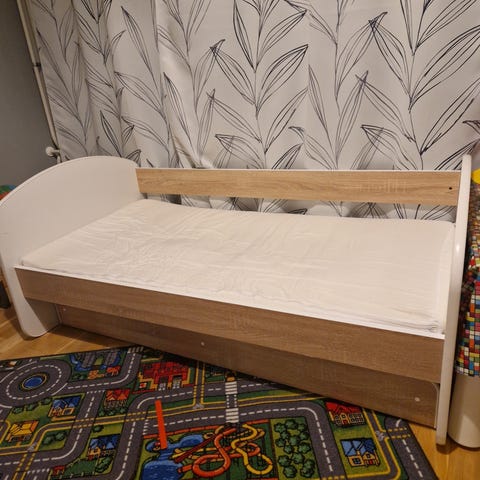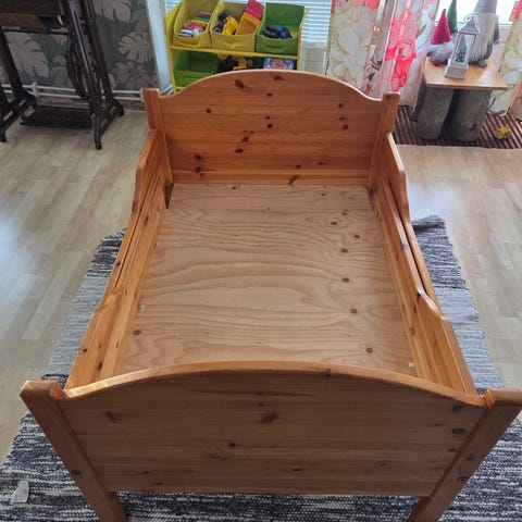 Myydään koivusta tehty pähkinän sävyinen lasten sänky. Ok kunnossa, jonkin verran käytönjälkiä . Sänkyyn mahtuu patja 60 x 120 cm. Patjan saa halutessaan mukaan.