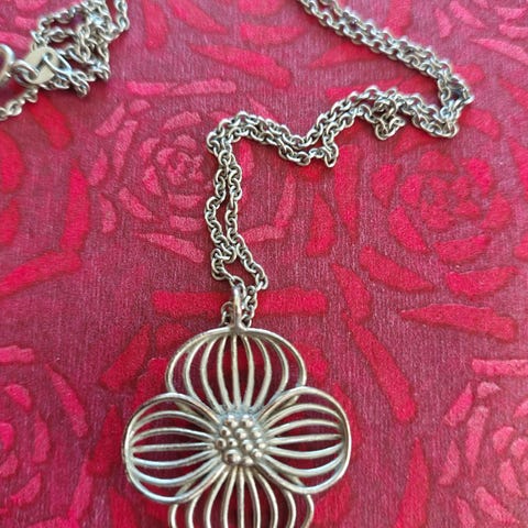 Hopeakoru hopeaketjulla, kokonaispituus n. 23 cm, ehjä mutta ajan patinaa.