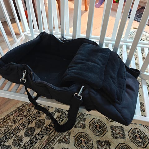 Phil& Teds merkkinen vauvan kantokoppa, tummansininen. Siisti kunto. Läpässä pieni tahra sisäpuolella. Mitat n. 70 cm x 35 cm. Sivuilla klipsut, joilla saa ilmeisesti kiinni rattaisiin. Meillä ollut veneily käytössä. Pehmeä topattu kansi ja sivuseinät. Vetoketjukiinnitys. Kissakoti. Vain nouto.
