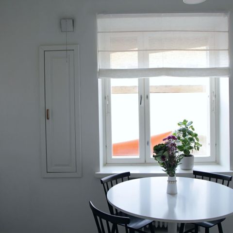 Ikean harmaasta Dytåg kankaasta ompelijan tekemä laskosverho.