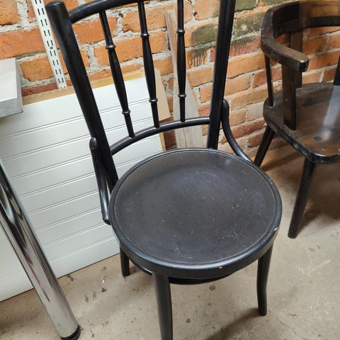 Vanha matala tuoli. Jykevä ja hyväkuntoinen.