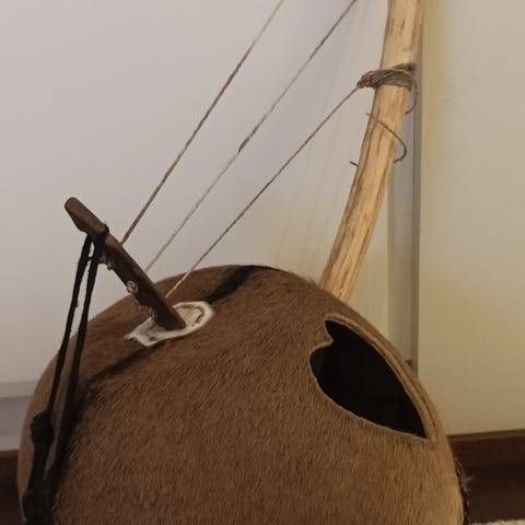 Tanzaniasta 80-luvulla tuotu, puusta ja metallista käsityönä valmistettu sormipiano. Toimii kyllä, mutta ehkä enemmänkin koriste-esineeksi.