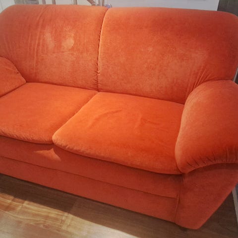 Myydään kuvassa näkyvä sohva ja sen tyynyt. Pehmeä istua. Kuluman ja käytön jälkiä kankaassa useammassa kohtaa (kts. kuvat). Irroitettavat päälliset, jotka voi pestä/vaihtaa uudenlaisiin. Ollut lasitetulla parvekkeella käytössä viimeisimmät vuodet.