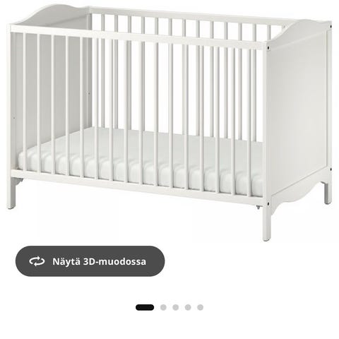 IKEA Pinnasänky on valkoinen lasten huonekalu. Pinnasänky sisältää patjan, jossa on kuvioitu pinta. Soveltuu vauvan tai pienen lapsen nukkumapaikaksi.