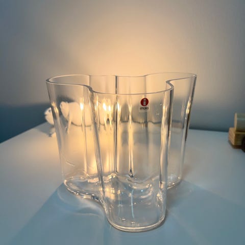 160 mm koristeena käytetty aaltomaljakko. Ei siis vedestä kalkkijäämiä. Pohjassa hyvin pieni viiru käytön jälkenä. Täysin ehjä.