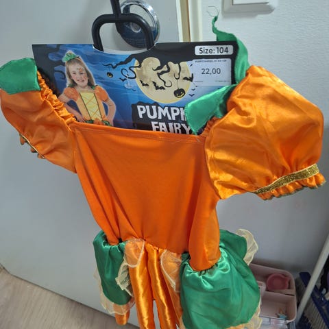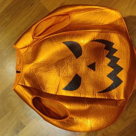 DIY itsetehty Halloween-puku kurpitsa hämähäkinseitti asu ja hattu n 98 - 104 kokoiselle, ehjä