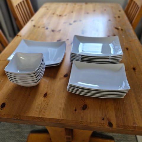 Nanson vaaleanpunainen kivikko astiasto, sis: lautanen 20cm, kulho 14x7cm ja muki. Muki kuin uusi, ei juurikaan ollut käytössä. Lautanen myös tosi hyvässä kunnossa, itse en löydä moitteita. Kulhoa käytetty enemmän ja tässä lusikasta tuollaisia viiruja sisäpinnalla, kts kuva.