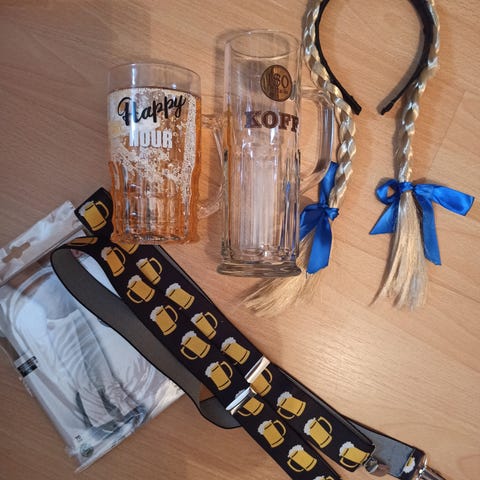 Myydään täysin uudet ja käyttämättömiksi jääneet laput kiinni olevat miesten Oktoberfest housut. Väriltään ruskeat, yksityiskohdat valkoiset. Koko XXL. Materiaali puuvillaa ja polyesteriä, joustavat mukavasti. Olkahihnojen pituus säädettävissä. Mukana varanappi. Ovh n.60€