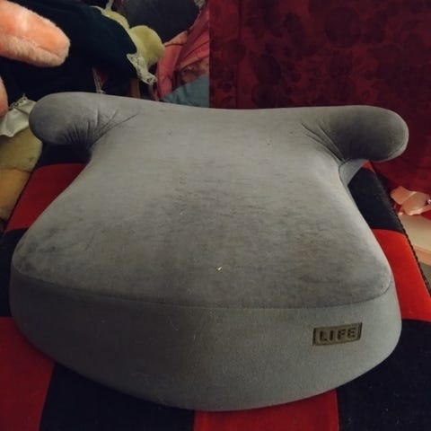Kuvanmukainen istuinkoroke lapselle autoon. Ollut meillä isovanhempien autossa.