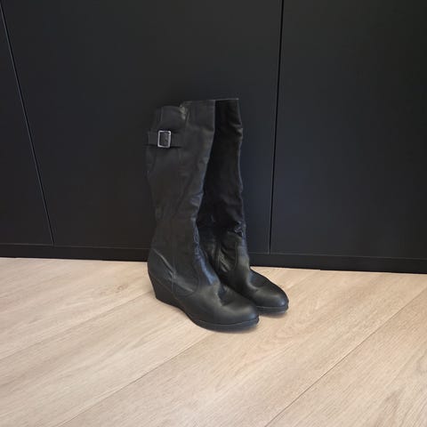Saappaissa vetoketju sivulla, koron korkeus 6 cm. Varren korkeus alkaen nilkasta 30 cm. Hyvännäköiset jalassa. Nouto mahdollinen Oulusta.