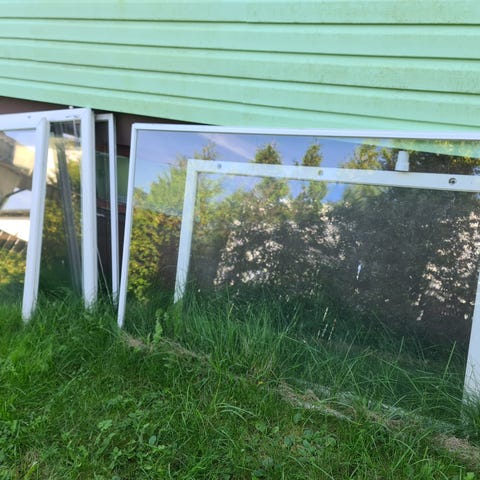 Kuvan ikkuna, mistä on toiselle puolelle laitettu jotain massaa, että ei näe läpi.