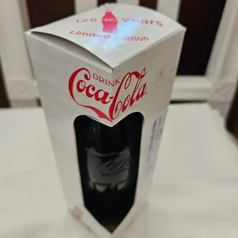 Myydään pohjoismainen Coca Cola -kiitospullo. Vuodelta 1992, jolloin oli kulunut 40 vuotta Coca Colan saapumisesta Suomeen. Harvinainen ja avaamaton. Alkuperäisessä samettipussissa. Kunto erinomainen.