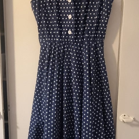 Ihana retro vintage kesämekko, vetoketju edessä, vyö, puuvillaa 100 %, Made in Finland Vanessa. Sopii S-M kokoiselle. Mitat olka-helma 92cm,kainalo-kainalo 47cm.