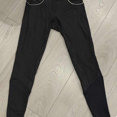 Kokopaikkaiset ratsastushousut. Lahkeessa pieni nirhuama josta kuva.