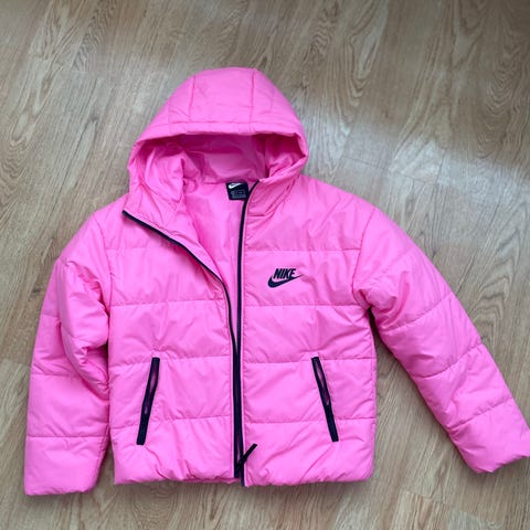 Nike pitkä takki / kääntötakki / talvitakki koko XS, väri musta ja toinen puoli musta-valokinen. Sisällä polyesterivanu. Takissa on vetoketjukiinnitys ja huppu.