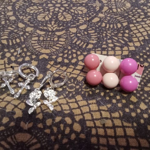 Kauniit vaaleanpunaiset korvikset myyntiin, koska sain toiset lähes samanlaiset. Kevyet, helpot pitää.
