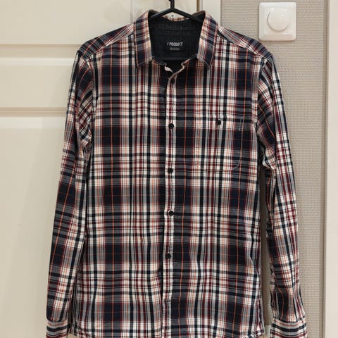 Kuvan käyttämätön valkoinen pitkähihainen kauluspaita kokoa M. Avattu muoveista