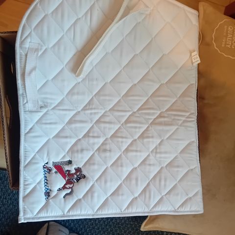 - Harry's Horse satulahuopa, tummansininen. Reunassa koristenauha jossa vaaleansinistä ja kullankeltaista. Hieno kiekuratikkaus.