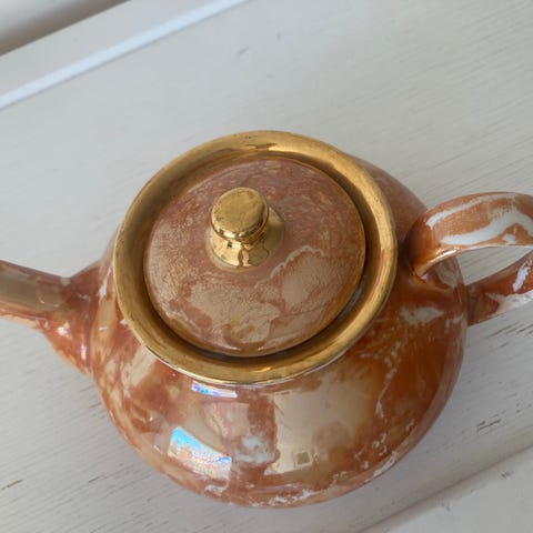 Myydään kannen kanssa 14 cm korkea ja 24 cm pitkä Arabia teekannu. Kuvan mukaista krakeloitumaa.