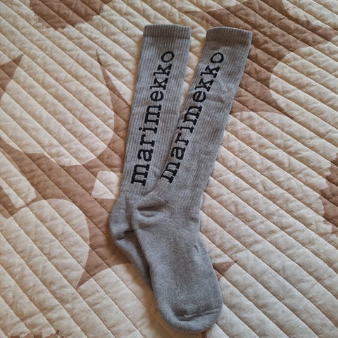 Marimekko Suikea Vihkiruusu polvisukat. Uudet. Koko 37-39. Takana pitkä Marimekko teksti.