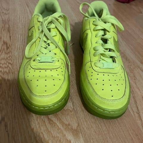 Naisten hienot AF1, mutta kantapäiden yläpuolella pientä kulumaa(kuva, ensimmäinen kerros, ei vielä läpi asti), sen takia edullisesti eteenpäin☺️ ei haittaa käyttöä.