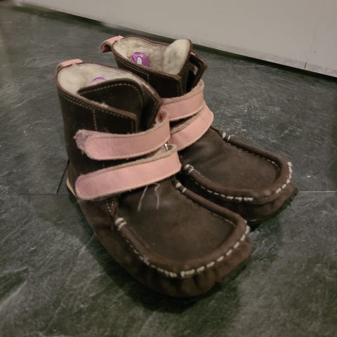 Myydään hyvin käytetyt, käyttökuntoiset Zeazoo Yeti -paljasjalkatalvikengät w-lestillä ja sheepskin-vuorilla, koko 27/28 (17,4 cm).