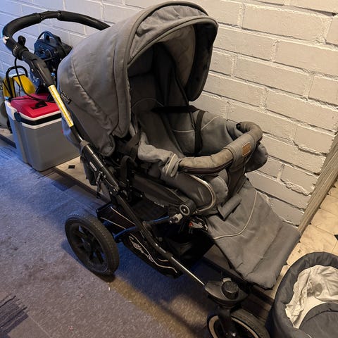 Olleet käytössä kahdella lapsella. Säilytetty lämpimässä varastossa. Olleet muutaman vuoden varastossa käyttämättä. Ilmatäytteiset renkaat.