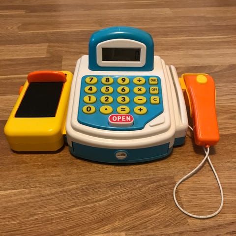 Myydään uusi käyttämätön lasten leikkikassakone. Myös äänitoimintoja, jotka toimii paristoilla (ei mukana). Sisältää mm. leikkirahaa ja ostostavaroita. Sopii hyvin kauppa- ja ravintolaleikkeihin.