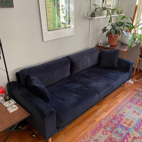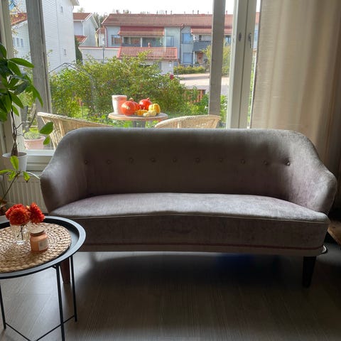 Kauniin tumman vihreä samettinen ihanuus kahdelle, kooltaan täydellinen pienempiin tiloihin ja helppo siirrettävä. Ostin sohvan noin vuosi sitten, kunnes yllättäen olikin muutto edessä eikä sohva enää sopinut uuteen asuntoon. Sohva on kuin uusi ja se on priimakunnossa.