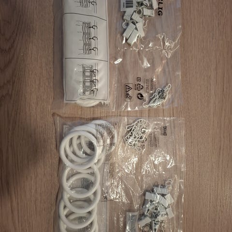 Kuvan kaltaiset verhon kiinnitys välineet, 65 kpl Isoäidin verhorengas 33/50 mm muovi/valkoinen(Pismark/Pisla), 10 kpl avaamattomia, 55 kpl avattuja. Lisäksi iso määrä erilaisia verhonipsuja (ks kuvat). Myydään kaikki yhdessä. Nouto tai toridiili.
