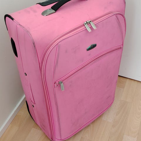 Hyväkuntoinen vedettävä iso matkalaukku. Koko 50x72cm.