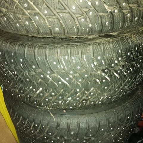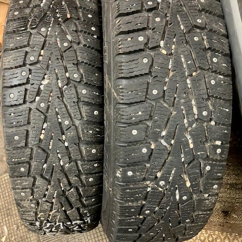 Vanteilla on erittäin hyväkuntoiset muutaman kuukauden ajossa olleet laadukkaat Nokian Nordman 8 185/60 R15 88T extra load nastarenkaat. Ne on valmistettu loppuvuonna 2021 (dot 4221) ja ovat tasaisesti kuuluneet, niissä on pintaa nopeasti mitaten noin 7-8 mm ja kaikki nastat vaikuttavat olevan myös tallella.