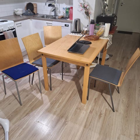 Selling a dining table and 2 chairs in good condition. The table can be extended with an additional section.