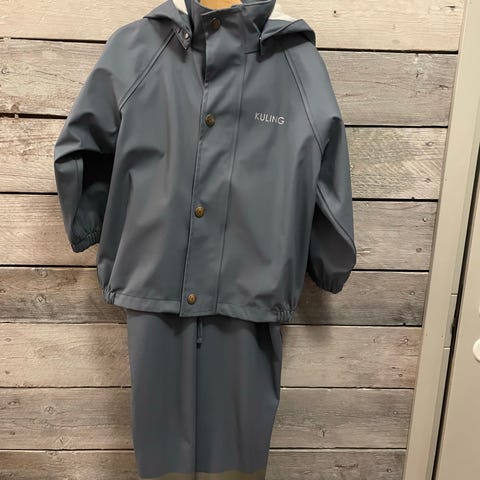 Kuling -brändin vihreän sävyinen vuoreton sadetakki oravakuvioinnilla. Koko 98 / 104, reilu mitoitus ja vastaa paremmin tuplakoon isompaa.