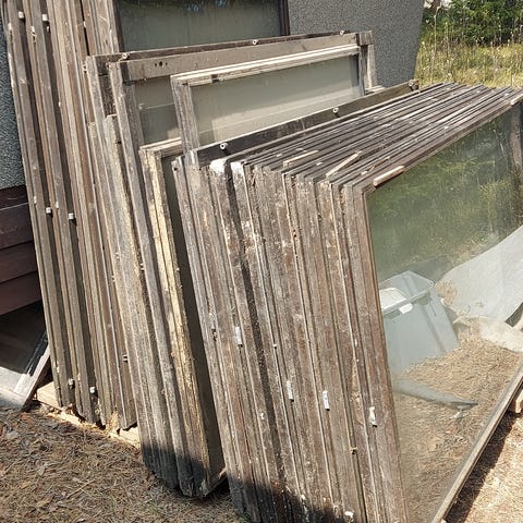 Tästä näppärä kaveri irrottaa rikkinäiset lasit esim mattopuukolla ja saa itselleen tyylikkään käyttämättömän megaikkunan vaikka kesähuoneeseen.