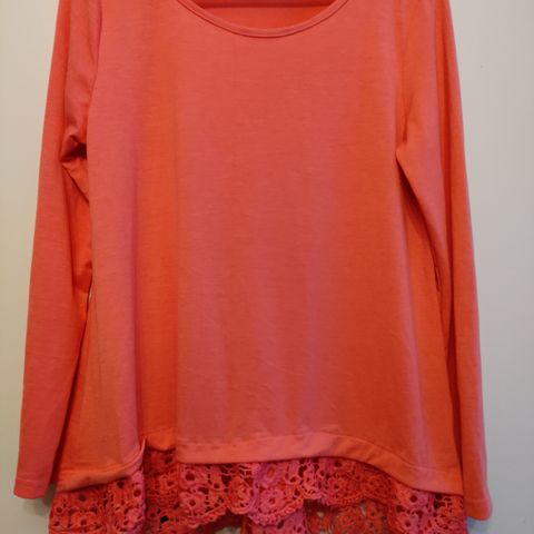 Uusi joustavaa materiaalia oleva tunika, 94 % viskoosia, 6 % elastaania. Vaatteessa kokomerkintä X-0 (44). Rinnanympärys vaatteen päältä mitattuna ilman venyttämistä 110 cm. Itselle hiukan liian tiukka (rinnanympärykseni 118 cm).