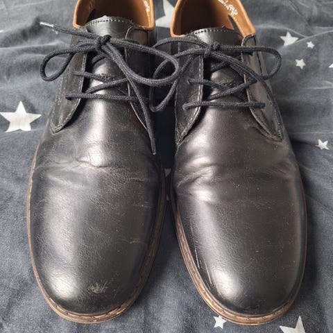 PR kenkä .kotimaiset mustat uudet nahkakengät .