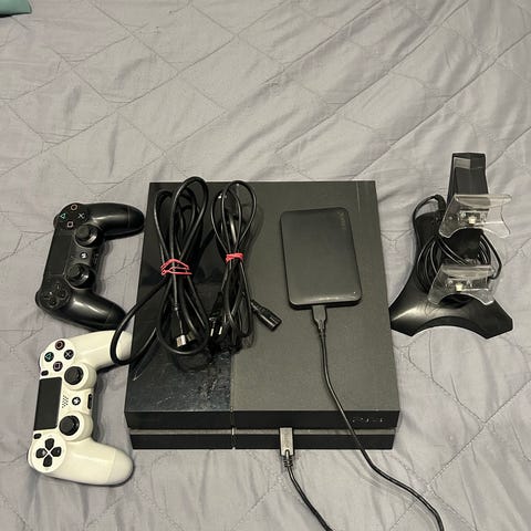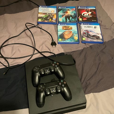 Myydään PS4-konsoli, langaton ohjain, kaksi peliä (Crash bandicoot, Witcher 3 Wild hunt) sekä kaikki tarvittavat kaapelit (Hdmi, virtakaapeli, ohjaimen latauskaapeli).
