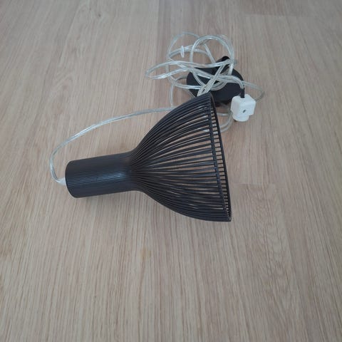 Kaare Bækgaardin suunnitelema hyväkuntoinen ja melko pienikokoinen (38 cm) valaisin. Mukana G9 led-polttimo. Valaisimessa on nyt sokeripalaliitäntä.