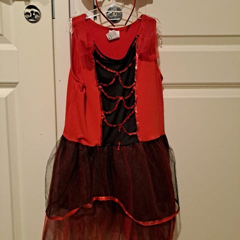 Myydään kuvan mukainen Halloween asu. Puku sopii noin 4-5-vuotiaalle.