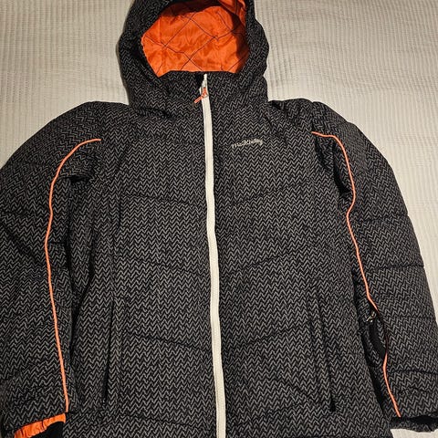 Oranssi musta valkoinen toppatakki 152 cm irroitettavalla hupulla