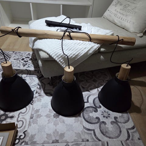 Hyväkuntoinen riippuvalaisin. Mukana ripustinjohto, jossa sokeripala (pikakiinnitys).