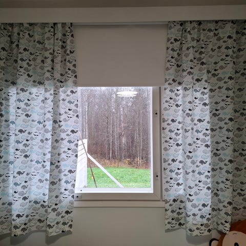 Ihana nalle-kuvioinen yksittäinen verho 148cm leveä ja 168cm pitkä. Näppärä ompelee tästä vaikka kaksi kapeampaa verhoa.