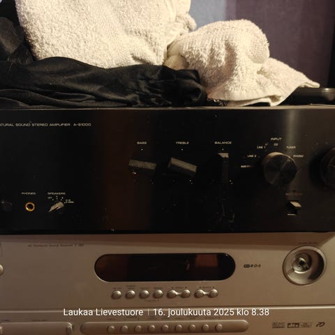 Laadukas ja järeä vahvistin. 2 x 100W RMS / 8 ohm. Olen ostanut tämän yli 20 vuotta sitten ja ollut kaikkiaan vähällä käytöllä, viime vuodet komeron perällä. Vahvistin onkin tuoreen oloinen ikä huomioiden. Testattu 26.10.2025 ja yleisesti toimivaksi todettu. Äänenlaadultaan erittäin hyvä ja selkeä. Kaikki nupit ja napit käyty läpi sekä liitännöistä muut paitsi CD (liitäntä ei salli pitkää keskipiikkiä), phono (toimii, mutta laatua ei pysty arvioimaan kun ei levysoitinta) ja vaihtoehtoiset kaiutinlähdöt.