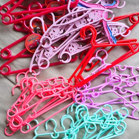 Siisti kunto, joissain hengareissa pintanaarmuja. Myyn nämä vain pakettina.