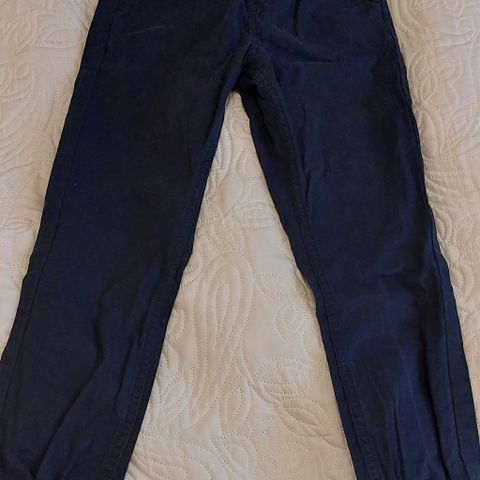 Polarn O. Pyret lasten housut, koko 128, väri sininen. Puuvillaa. Taloudessa kissa.