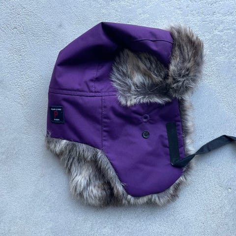 Käytetty, siistissä kunnossa. Toisessa korvaläpässä pieni laikku, mutta en ole viitsinyt sen takia pestä, eli todennäköisesti lähtee putsauksella tai pesulla.