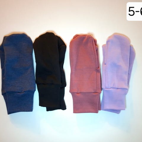 Saatavilla myös koossa 1-2v, 3-4v ja vauvojen peukalottomia. Tilauksesta muita kokoja, myös aikuisen kokoisia.